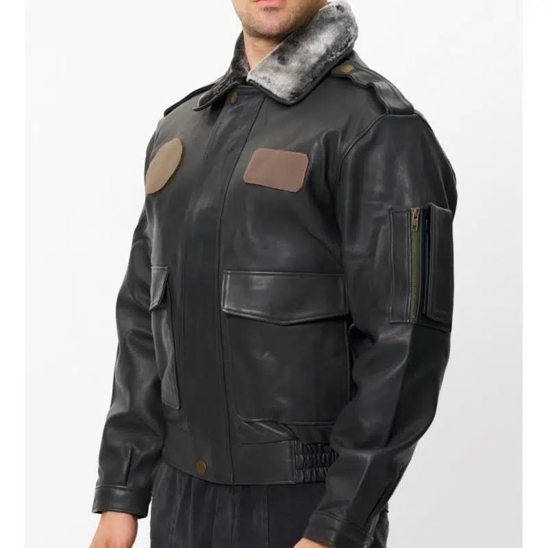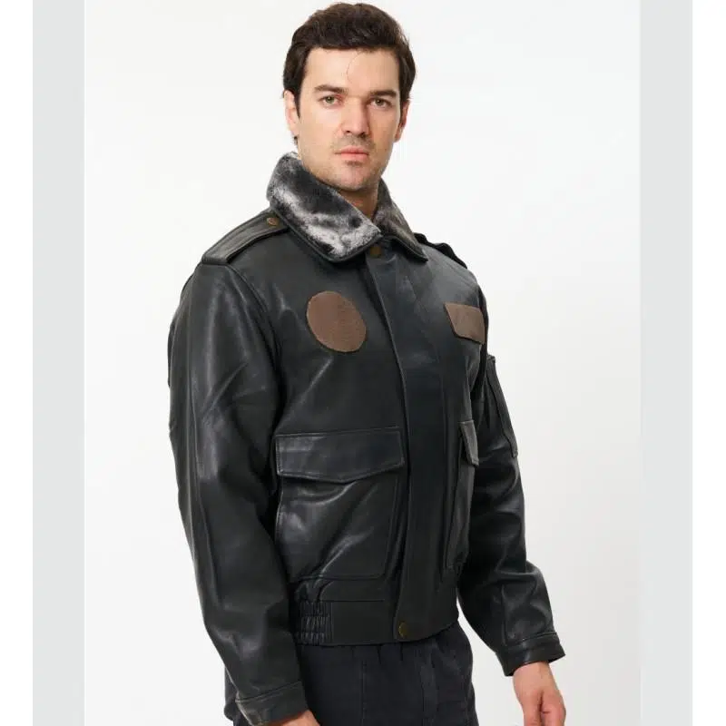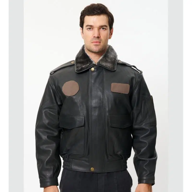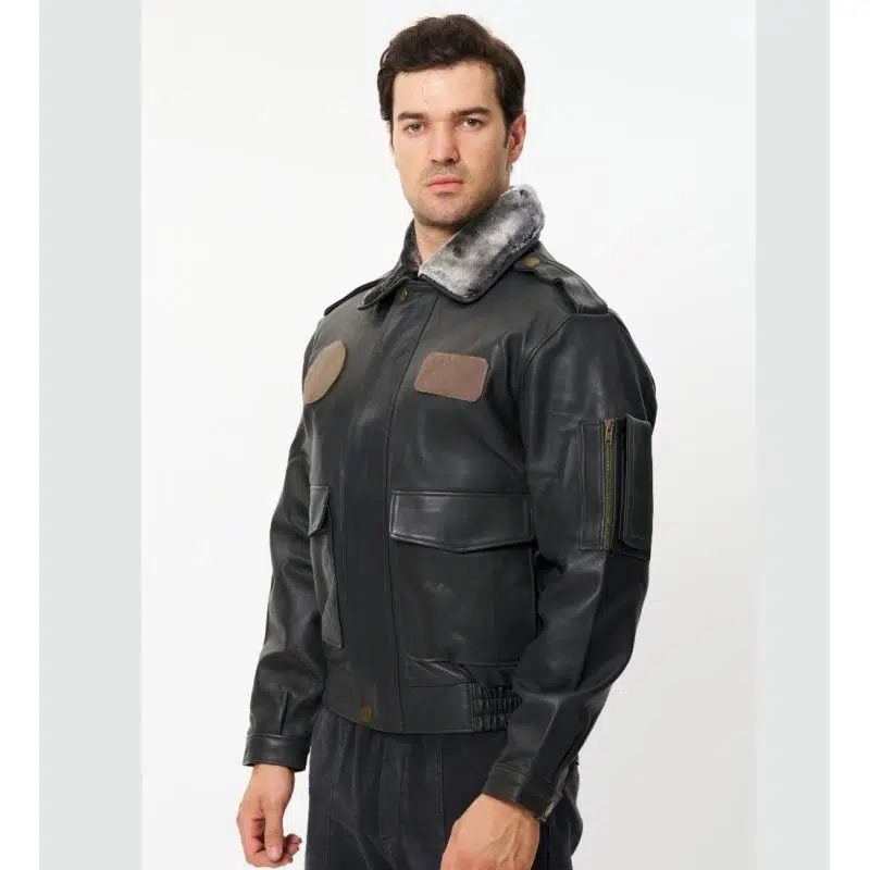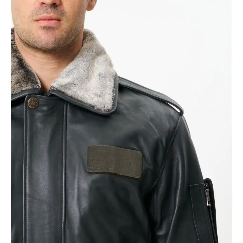 ÇIKARILABİLİR YAKALI DİK CEPLİ DERİ PİLOT MONTU