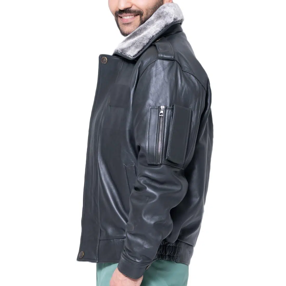 ÇIKARILABİLİR YAKALI YAN CEPLİ DERİ PİLOT MONTU ( SADE )
