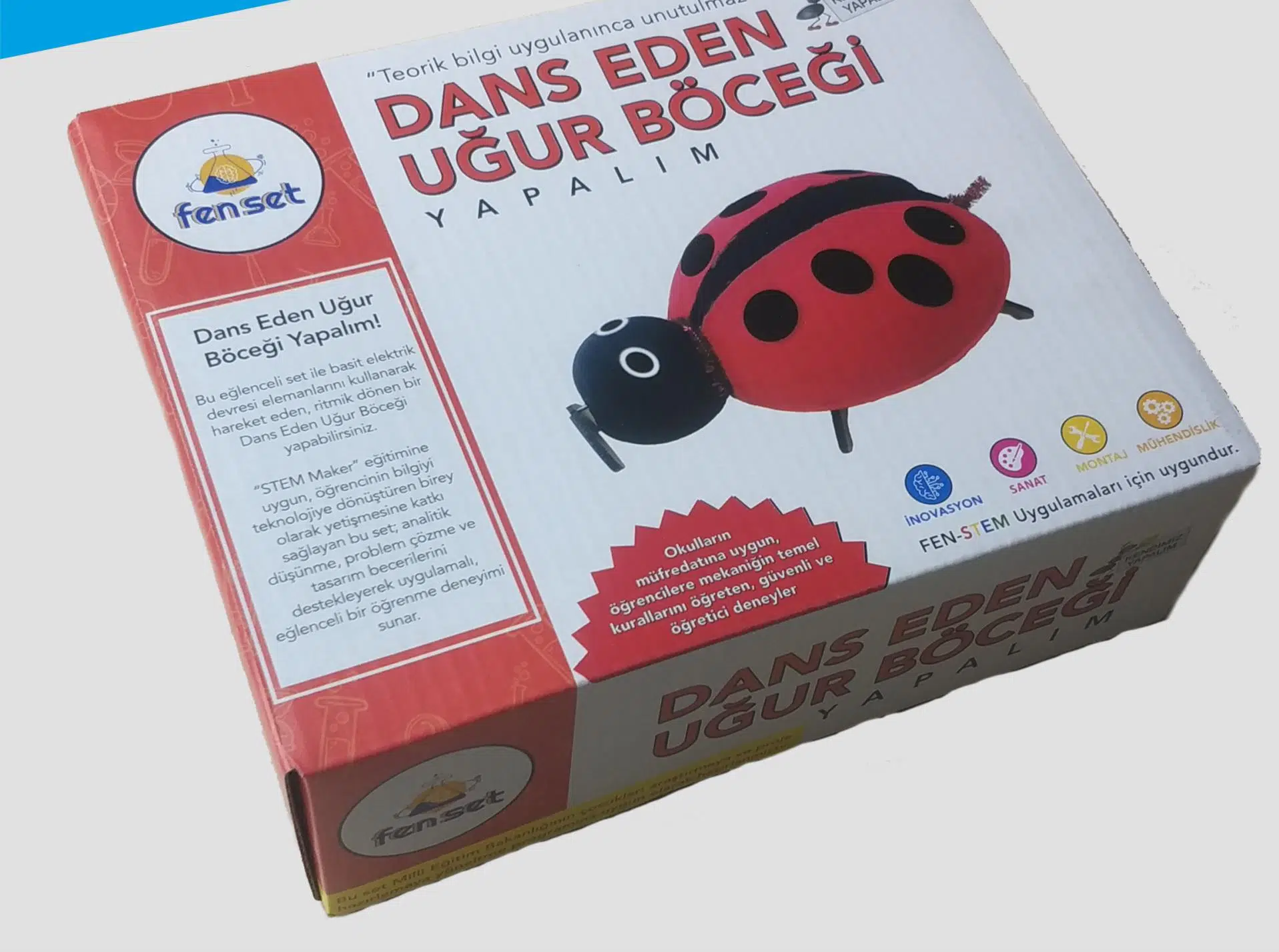Dans Eden Uğur Böceği Seti, öğrencilerin temel elektrik devresi bilgilerini uygulamalı olarak öğrenmelerini sağlayan eğlenceli bir STEM etkinliğidir. Motor ve ucuna bağlı dengesiz pervane sayesinde ritmik ve titreşimli bir hareket oluşturarak elektrik enerjisinin hareket enerjisine dönüşümünü somut biçimde gözlemleme imkânı sunar; kendi tasarımına göre boyanabildiği dış kabuğu ise yaratıcılık, el becerisi ve görsel tasarım yeteneğini destekler.