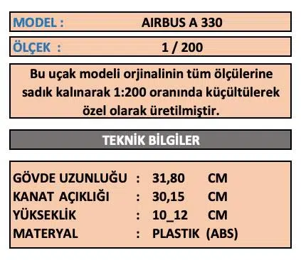 | Etiketler | İsme Özel Airbus A 330 TK Koleksiyon 1/200 Model Uçak Masaüstü Sergi Maket Uçağı |