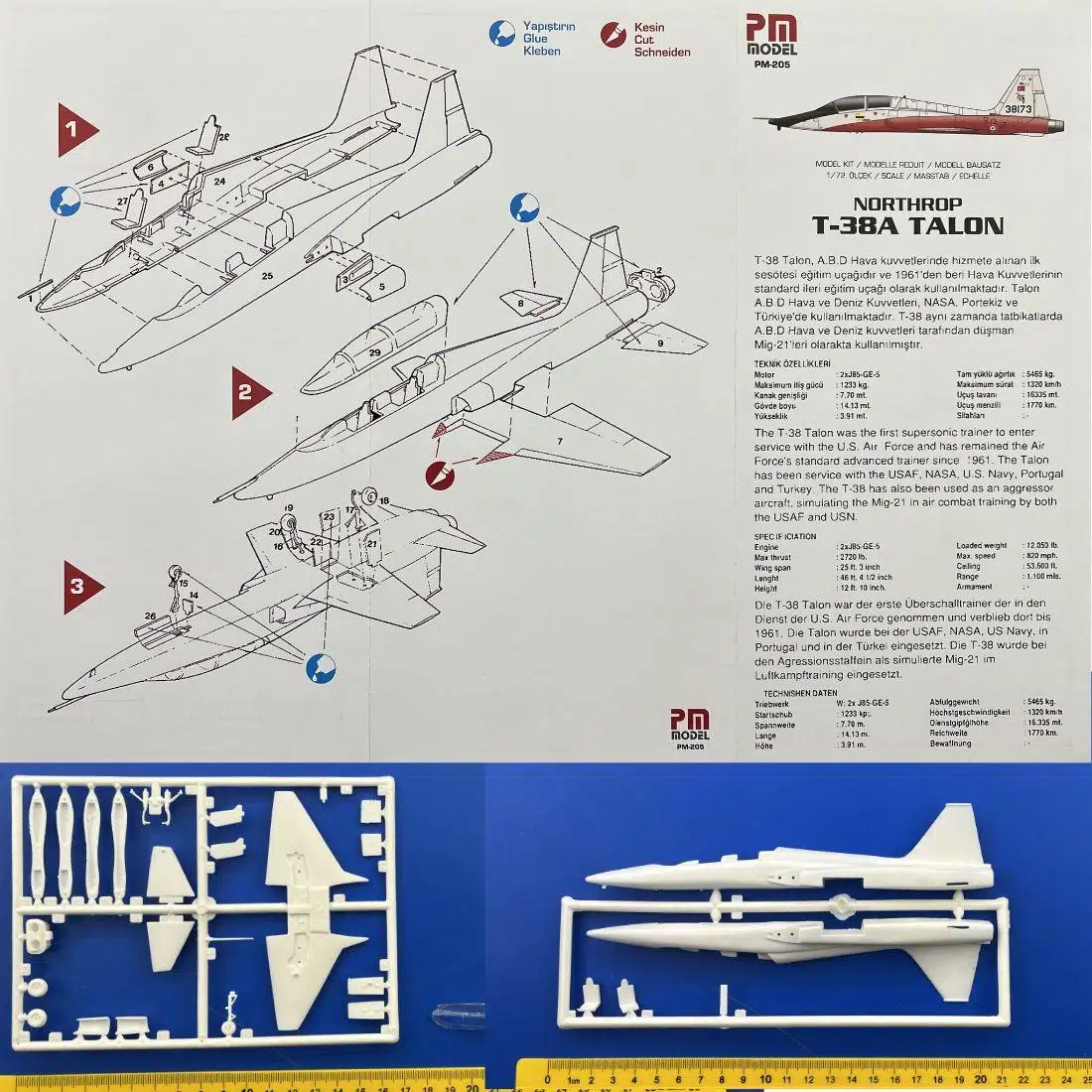 PM Model 205 1/72 Northrop T-38A Talon Eğitim Uçağı Demonte Plastik Maketi