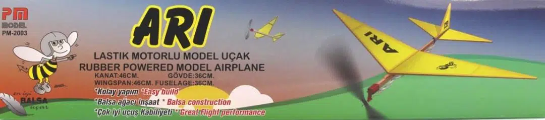 ARI Modelimiz özel kanat tasarımı nedeniyle özellikle modelciliğe başlamak için ideal bir modeldir.Yeni başlayanlar için model uçak yapımında en büyük sorun kanat uçlarının çarpık yapılmasıdır; ARI modelinde böyle bir sorun yaşamayacaksınız.ARI Klasik 2,5 x 5mm. balsa çıtaların bir maket bıçağı veya tek taraflı özel jiletler ile plana göre kesilip, yapıştırılması ile yapılır. ARI Modeli kolay yapılan ve çok güzel uçan bir modeldir.