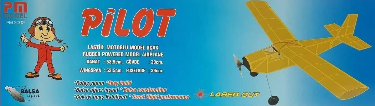 Pilot modeli gövdeli, lastik motorlu bir modeldir. Pilot modeli tamamen balsa ağacından ve lazer kesim bir modeldir.Modelin kutusunda CNC de bükülmüş iniş takım teli, plastik pervane, plastik tekerlekler, plastik başlık, plastik arka tekerlek, plastik kanat bağlama pimleri vardır.